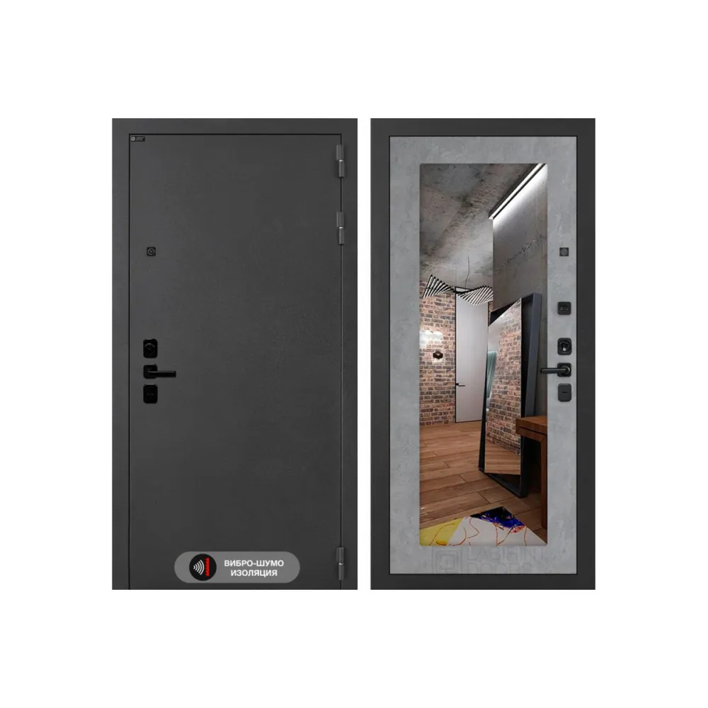 Входная металлическая дверь Лабиринт ACUSTIC с Зеркалом 18 - Бетон светлый